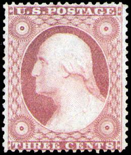 1861, 3¢ Washington, rose (Scott 65), unusually rich color, very bright and nicely centered, o.g., hinged, Fine to Very Fine, with 2025 P.S.A.G. certificate. Scott $125. Estimate $50 - 75. Scott $125 Suggested Bid $50-75 (Image)