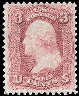 1867, 3¢ Washington, rose, D. grill (Scott 85), black cancel; reperforated at right, Very Good to Fine. Scott $1,050. Estimate $150 - 200. Scott $1,050 Suggested Bid $150-200 (Image)