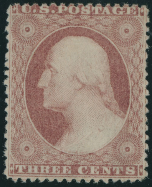 1857, Washington, 3c rose, type I, fresh color, traces of OG, fine, C.v. $1,050, Est. $200-$250 (Image)