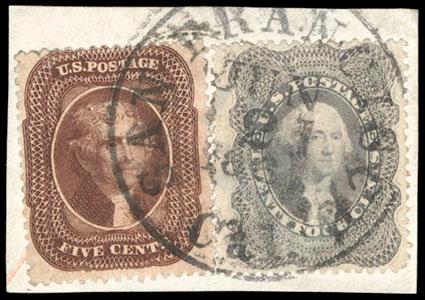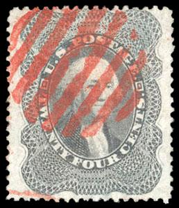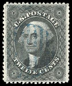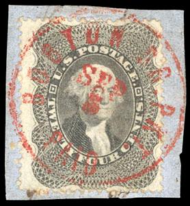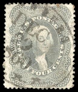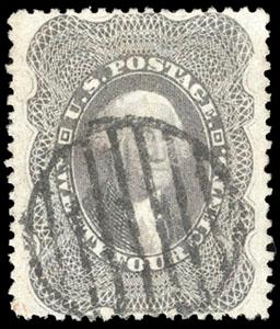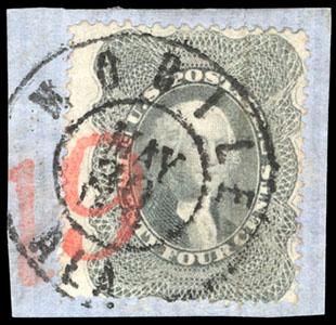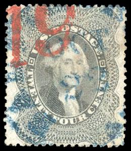 1860, 24¢ gray lilac. blue Baltimore cds & red numeral "19" credit handstamp, Very Fine and attractive, with 1997 & 2005 P.F. certificates. Scott No. 37; $400. US$0 (Image)