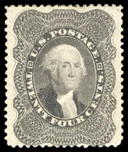 1860, 24¢ gray lilac. Neat oval 1860 Newburg/B. & O. railroad cancel; small faults, Very Fine appearance and a rare cancellation on the 24¢ value, with 1978 & 2015 P.F. certificates. Scott No. 37; Estimate $150 - 200. US$150-200 (Image)
