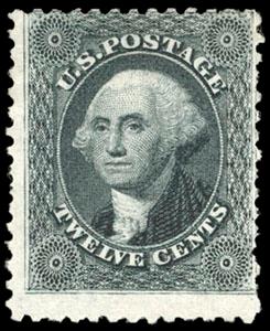 1857-60 (1875 Reprint), 12¢ greenish black. Only 489 sold, without gum as issued, sharp impression, centered at top right; one pulled perf at bottom right, just Fine, with 2007 P.F. certificate. Scott No. 44; $3,000. US$0 (Image)