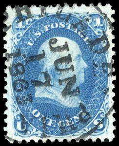 1861, 1¢ blue. Lovely color and impression of bright white paper, bold "Philadelphia Jun 17, 1863" cds, Extremely Fine and attractive, with 2006 P.F. certificate. Scott No. 63; Estimate $75 - 100. US$75-100 (Image)