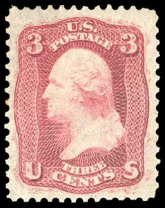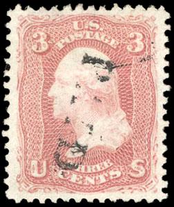 1861, 3¢ rose. Central straight line "Paid" cancel, perfectly centered with in large margins, fresh color, Extremely Fine, an outstanding gem single. Scott No. 65; Estimate $100 - 150. US$100-150 (Image)