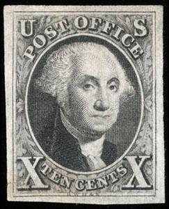1847, 10¢ black. No gum, ample to mostly large margins, strong color and impression; small tear at lower left slightly into design, Extremely Fine appearance, an attractive and rare unused example. Scott No. 2; $15,000. US$0 (Image)