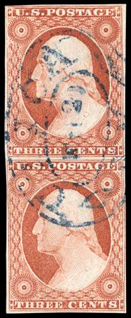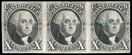 AN ATTRACTIVE AND VERY RARE STRIP OF THE 1847 10¢ ISSUE. US$0 (Image)