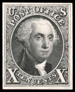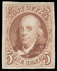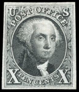 AN ATTRACTIVE EXAMPLE OF THE RARE 1851 1¢ IMPERFORATE TYPE IB, WHICH COMES FROM ONLY SIX POSITIONS ON PLATE 1E: POSITIONS 3-6, 8 AND 9R1E. US$0 (Image)