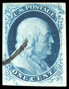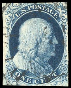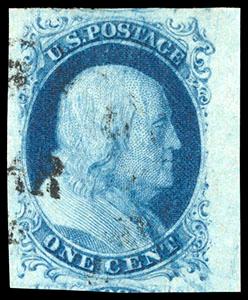 1851, 1¢ blue, type II, plate 4. Position 8L4, deep color, Fine, a scarce type II from plate 4, with 2013 Weiss & 2013 P.F. certificates. Scott No. 7 var.; $900. US$0 (Image)