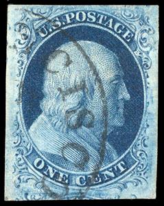 A CHOICE USED EXAMPLE OF THE SCARCE 1851 1¢ TYPE III IMPERFORATE ISSUE. US$0 (Image)