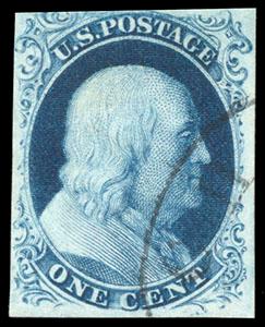 A MAGNIFICENT USED EXAMPLE OF THE 1851, 1¢ TYPE II IMPERFORATE - GRADED GEM 100 BY P.S.E. AND REGARDED AS ONE OF THE FINEST USED EXAMPLES IN EXISTENCE. US$0 (Image)