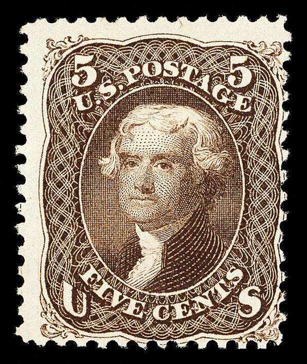 1863, 5¢ black brown (Scott 76a), unused without gum, in rich, unmistakable color on pristine paper, Fine, with 2009 Weiss certificate. Scott $850. (Image)