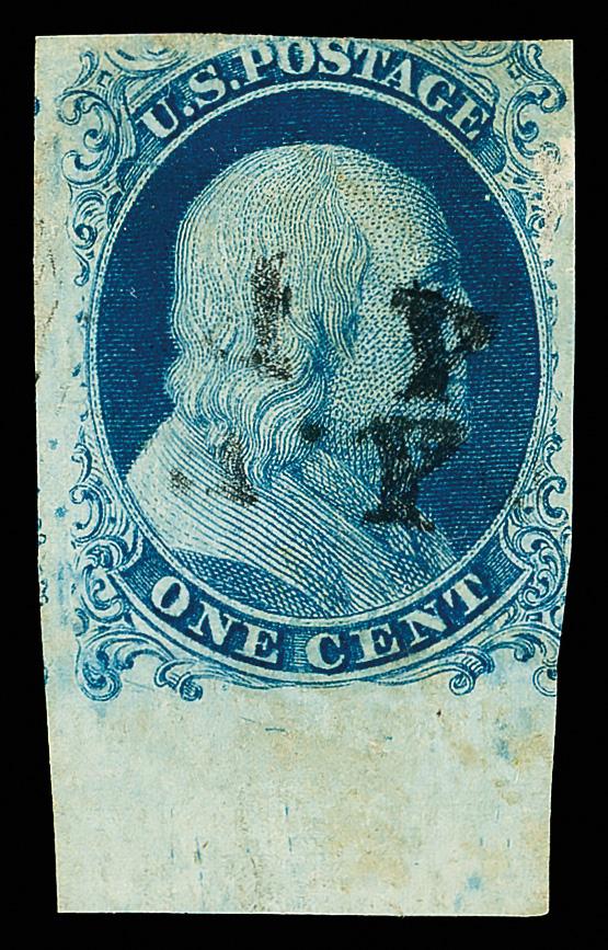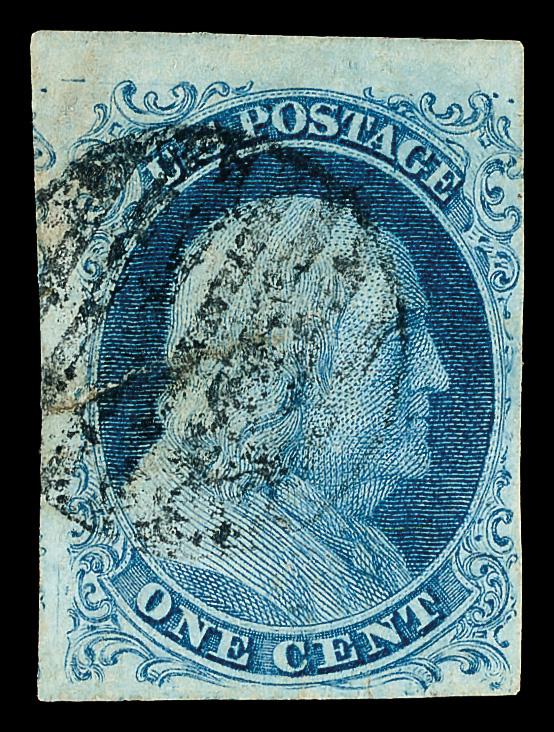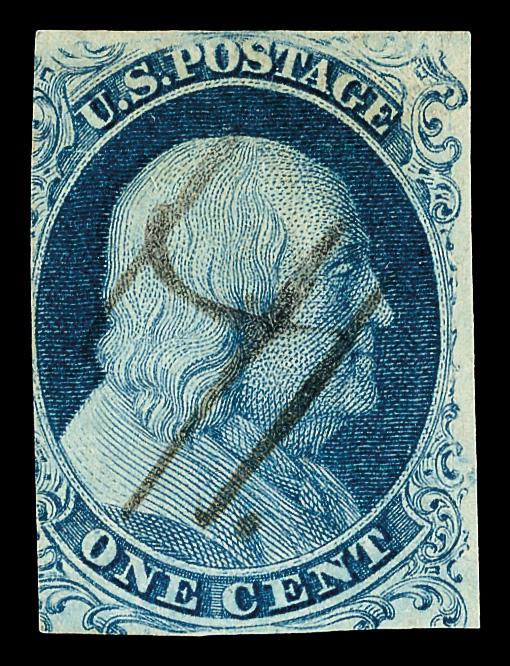 1851, 1¢ blue, type Ia (Scott 6), with immense color depth and razor-sharp detail on like-new paper, sound with manuscript cancel, Fine, with 1981 P.F. certificate. Scott $4,500. (Image)