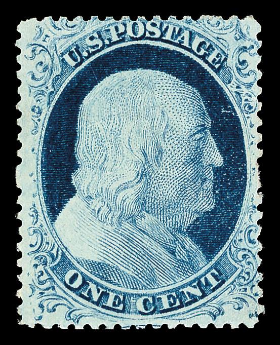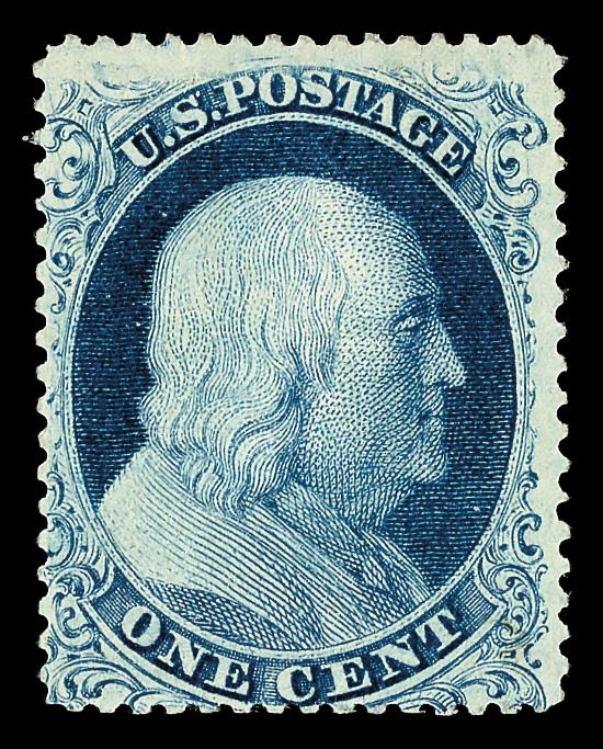 1860, 90¢ blue (Scott 39), o.g., hinged, Post Office fresh with intense color, Fine. Scott $3,000. (Image)