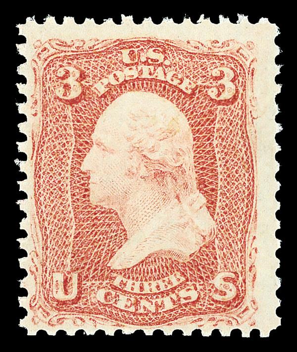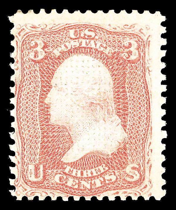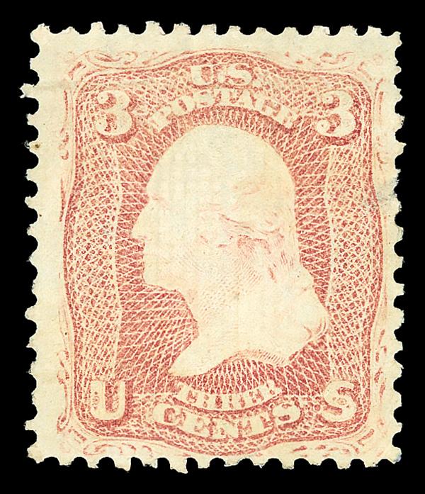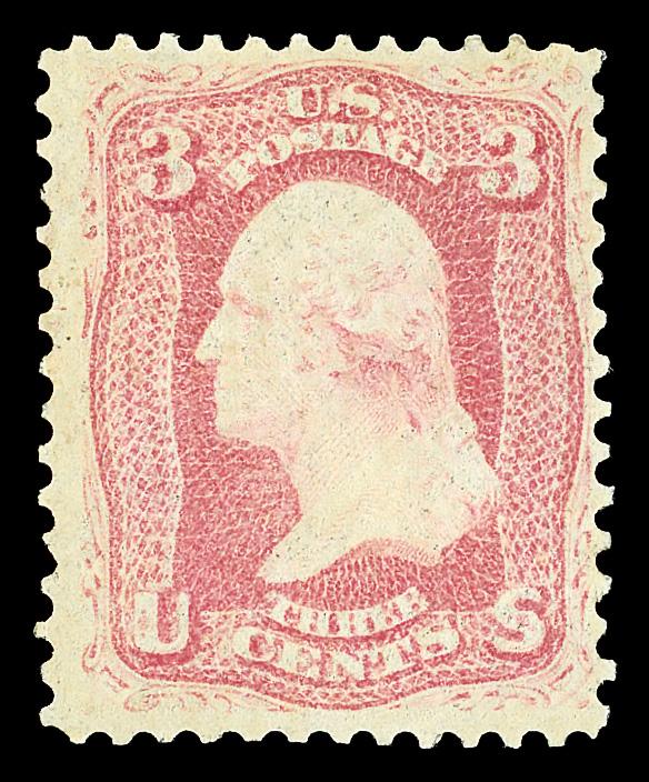 1861, 3¢ pink (Scott 64), o.g., lightly hinged, immaculate with exquisite color and clean impression, sound on luminous paper, Fine to Very Fine, a truly pretty stamp, with 1994 and 2003 P.F. certificates. Scott $14,000. (Image)