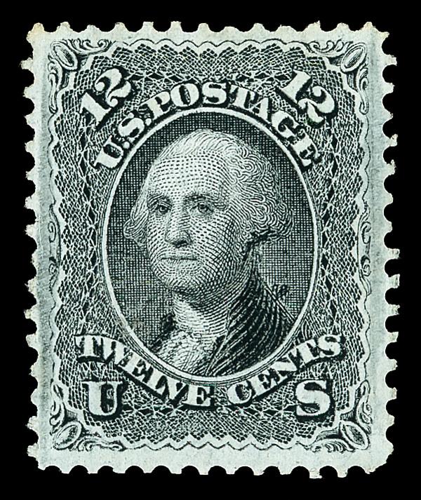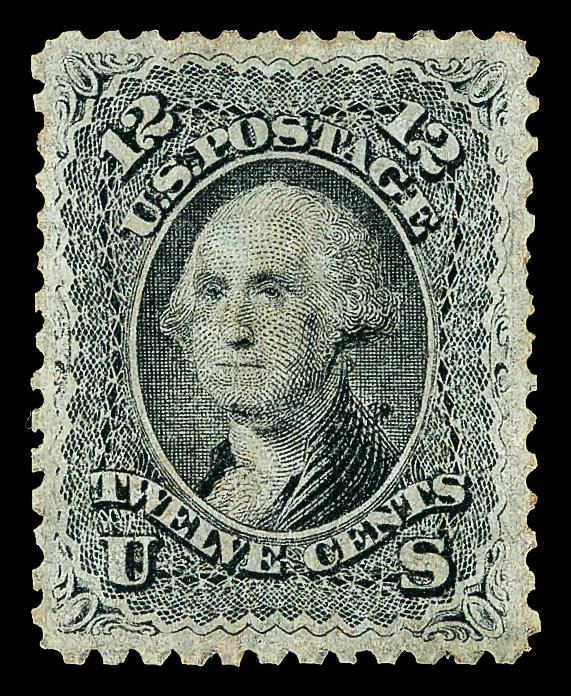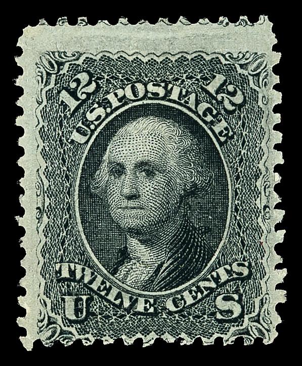1861, 12¢ black (Scott 69), o.g., hinged, an enticing stamp with crystalline detail in captivating color; toned, reperforated at top, Very Fine appearance, with 2000 P.F. certificate. Scott $1,900. (Image)