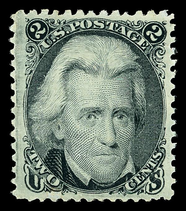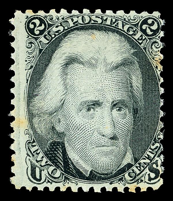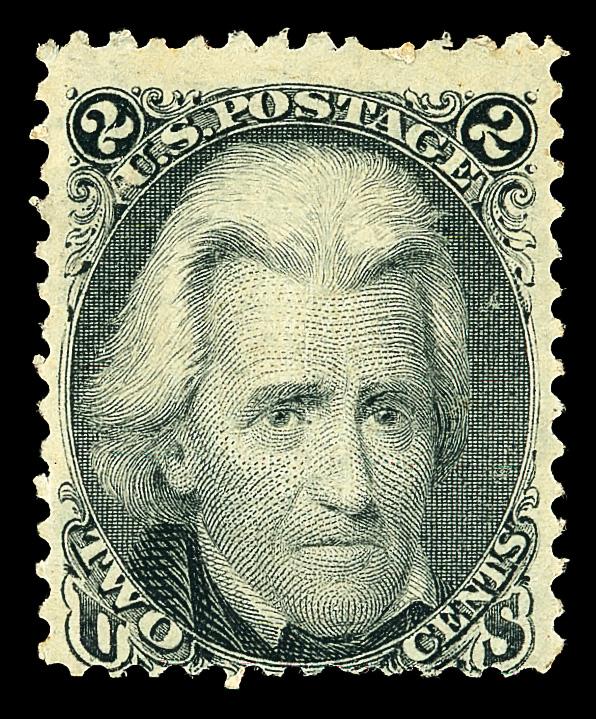 1863, 2¢ black (Scott 73), o.g., lightly hinged, a beauty with superlative color and clarity, on immaculate paper with perforations clear all around, Fine to Very Fine but with exceptional eye appeal, with 1991 P.S.E. certificate. Scott $350. (Image)