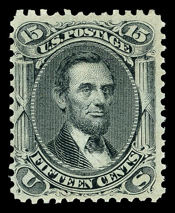 1867, 15¢ black, E. grill (Scott 91), o.g., very lightly hinged, sound with clear impression and crisp color; grill lightly face-visible, Very Fine for this rarely offered item, with 1998 P.F. certificate. Scott $12,500. (Image)