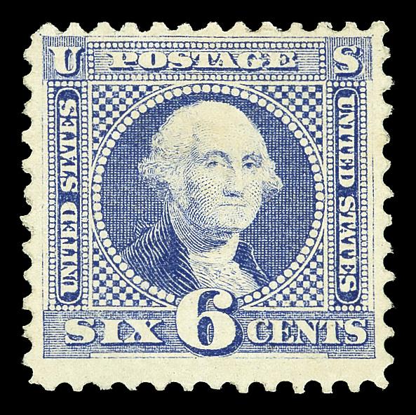 1869, 6¢ ultramarine (Scott 115), o.g., hinged, clean and clearly printed in cool color, Fine plus, with 2001 P.F. certificate. Scott $2,600. (Image)