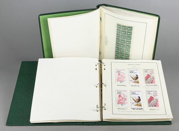 United States. Advanced booklet collection 1903-1991, Scott Specialty album and Lighthouse binder with Scott pages beautifully illustrated with booklets and booklet panes; panes include #319p, 331a, 332a, 375a, 498f, 501b, 502b, C10a; unexploded booklets include BK54, BK55, BK80, BK86, BK102, BK109, BK112, BK113, BK142 (1-4, 10-12, 14, 15, 20, 34), BK140B, BK148, BK149, BK159, BK160, and BK171 (2-4); the good stuff, Fine to Very Fine. Shipping charges apply - weight 7.4 lbs. (Video for this lot) (Video2 for this lot) (Image)