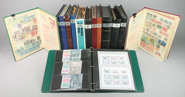 United States, Stack of stockbooks 1862-1995, 14 stockbooks with mix of useful as well as pedestrian stock; early used from #11 to 259, Washington Franklins and Columbians (and cut squares), Famous Americans mint singles and blocks, Washington Bicentenial and Army Navy mint singles and blocks, Farleys to 1940 mint and blocks, souvenir sheets from the 3¢ Byrd to the $2 Inverted Jenny, Postage Due (with Special Delivery and Parcel Post), mixed mint and used Airmail, and about 50 mostly used Federal Ducks ($1 (18), $2 (12), $3 (13), $5 (5)), Fine to Very Fine. Shipping charges apply - weight 38.6 lbs. (Video for this lot) (Video2 for this lot) (Video3 for this lot) (Video4 for this lot) (Video5 for this lot) (Video6 for this lot) (Video7 for this lot) (Image)