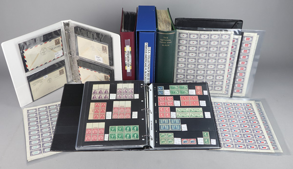 U.S. Air Mail Accumulation with Better Plate Blocks, 1918-1976, used highlights include C1-C6 (with duplication); mint highlights include C10a, and various plate blocks of six for C7 (2), C8 (6), C9, C10 (4), C11 (3), C12, and others; various Air Post Special Delivery blocks with marginal markings included, exploded and unexploded booklets of all kinds, and (5) U.S. Post Office Philatelic Truck Sheets; fully imaged online, Fine to Very Fine. Shipping charges apply - weight 5.2 lbs. (Video for this lot) (Image)