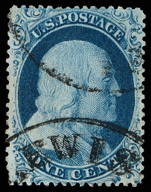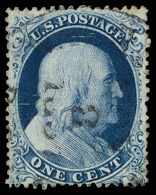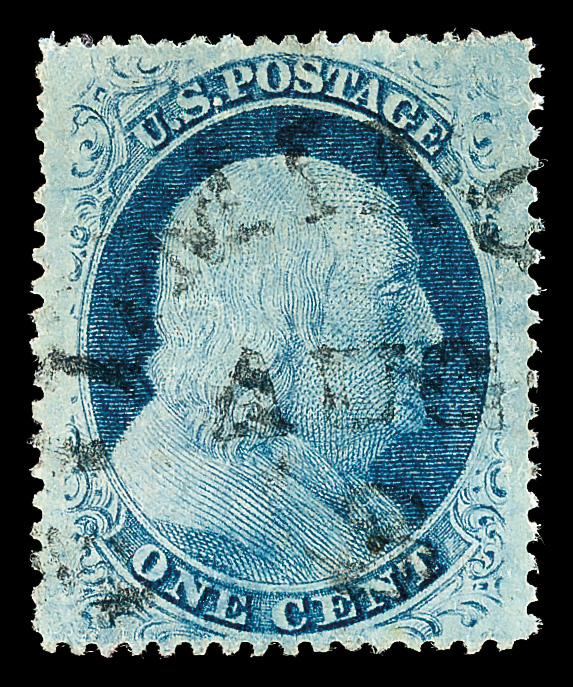 1851, 1¢ blue, type III (Scott 8 var.), position 99R2, fresh-faced with intense color and crisp lines, well balance margins and unobtrusive town postmark; few tiny defects, otherwise Very Fine, with 1973 P.F. certificate. Scott $15,000. (Image)