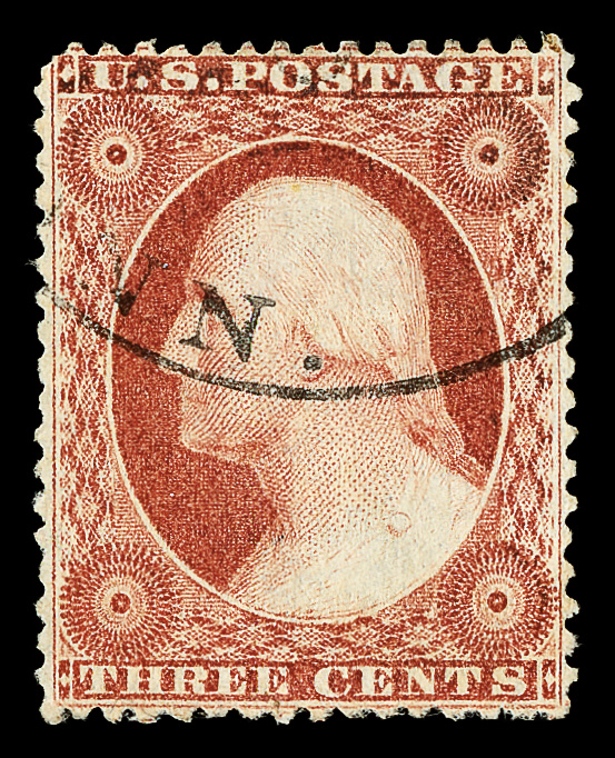 1857, 3¢ rose, type I (Scott 25), fresh and sound with rich color and crisp detail; partial town postmark cleanly struck, Extremely Fine, only five stamps grade higher in PSE's Population Report, with 2019 P.S.A.G. certificate graded XF 90. SMQ XF 90; $1,350. Scott Stamp Values $1,200. (Image)
