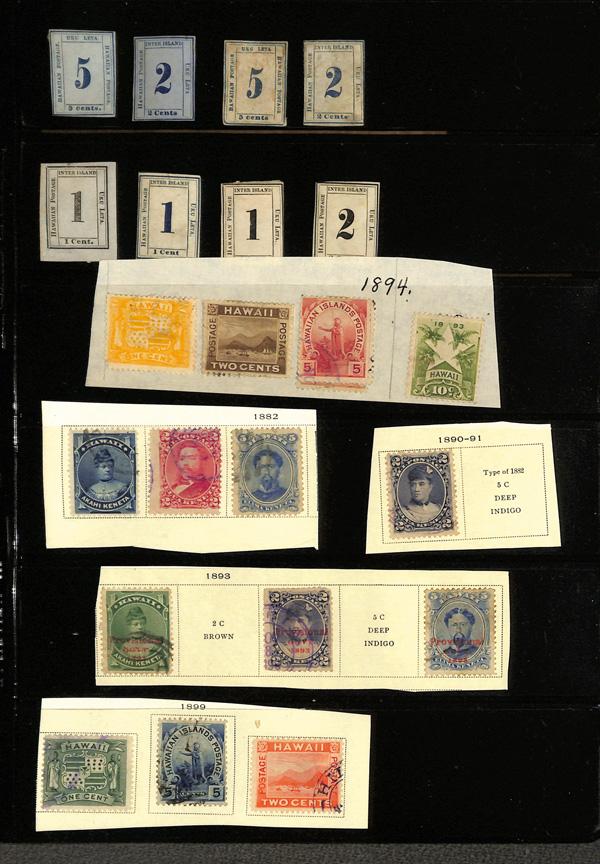 Hawaii, Selection of Mint & Used on Stocksheets, 1863-99, Eight examples of the numeral issue, two margin blocks of the Kahului Railway Company (6¢ & 18¢), an inscription block of ten of #66, used & unused #34, and others. Condition varies, but on the whole Fine to Very Fine, viewable in full. (Image)