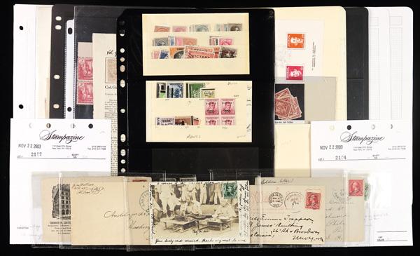 Philippines, Small Varied Collection with Covers, the stamps on homemade quadrille pages or stockpages, including several fresh plate blocks, #323c (signed twice), a number of Spanish era stamps, an article from The New Southern Philatelist (Oct. 1933) regarding the Aguinaldo stamps (with stamps hinged), etc., the five covers including a 1901 Soldier's Letter, a 1904 real photo post card, and three examples of "Philippines"-overprinted stamps cancelled in the US (one with Philippines return address); no howling rarities, but a nice little lot, Fine to Very Fine or better, fully imaged online. Shipping charges apply - weight 0.8 lbs. (PDF for this Lot) (Image)