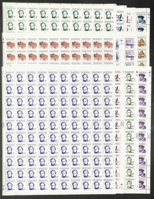 Micronesia, Navigators, Landscape, and Culture, 1984 (Scott 5-20), post office fresh complete sheets of (100) for the 1¢-$5 values, a complete set, in perfect condition; Face $1,011. Scott $1,810. (PDF for this Lot) (Image)