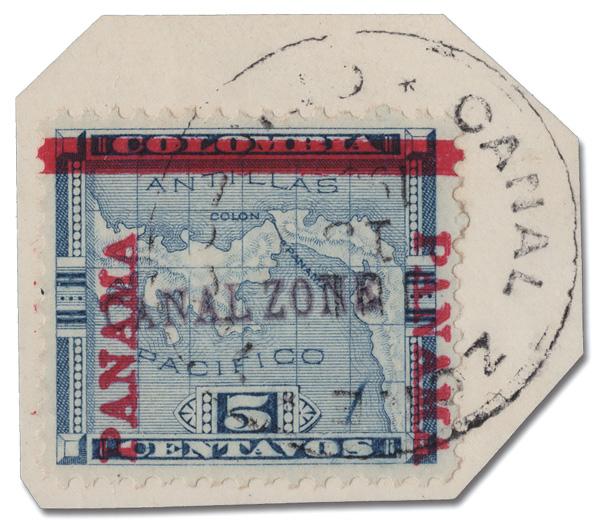 1904, 5c Map, blue (Scott 2), tied on a small piece by a light c.d.s., Very Fine, with a 2004 P.S.E. certificate. Scott $190. (Image)