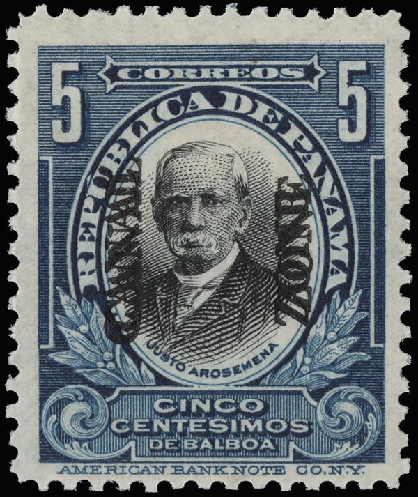 1909, 5c Arosemena, deep blue & black, type I overprint double (Scott 33a), o.g., lightly hinged, fresh and bright, Fine to Very Fine. Only 200 were issued., with a 2004 P.S.E. certificate. Scott $375. (Image)