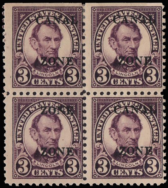 1925, 3¢ Lincoln, sharp "A", "ZONE ZONE" (Scott 85a), the lower left stamp in a block with three normal, disturbed o.g.; straight edge at the top, typical centering, Fine. Only 90 believed issued., with a 2004 P.S.E. certificate. Scott $550+. (Image)