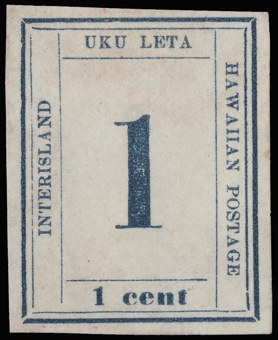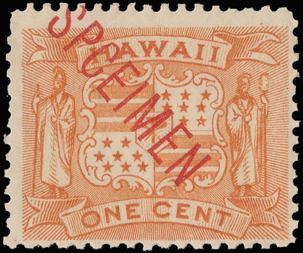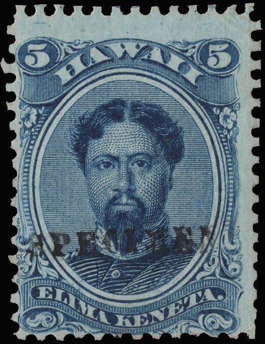 1890, King Kamehameha V, 5¢ deep indigo, overprinted "SPECIMEN" (Scott 52C-S), in small, serifed capitals, without gum, fresh and about Fine. (Image)