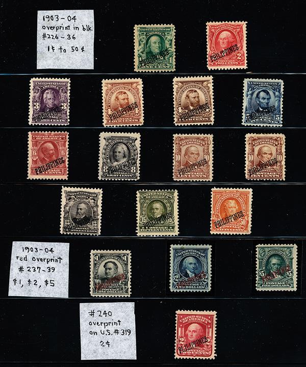 U.S. Possessions, Mostly Mint Holding of Cuba, Guam, Philippines, Puerto Rico & Ryukyus, 1898-1957, Presented on black cards, a selection of mostly better material, such as the following: Cuba mint J3-4, E1, Guam mint 2-7, 10-12, M3-4, used 8, Philippines mint 212, 213-17, 228-34, 237-38, 254, 274, 284, 340-52, 357 (block), 383-96 (blocks), E1, E6 (block of 4 & center line block of 6), E6a (plate block of 6), NO2, used 212, 219, 224, 236, C17, Puerto Ricomint 213 (block), used J3, Ryukyu Islandsmint 8-13, 14, 15, 18, C9-13, with some of the above even in duplication including other better, like ten NH singles & 4 blocks of Philippines C36-45, and the Filipino Revolutionary Government Y3 with five mint examples, overall Fine to Very Fine, photographed in full. Shipping charges apply - weight 0.6 lbs. (PDF for this Lot) (Image)