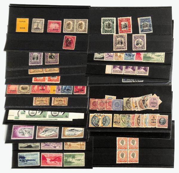 U.S. Possessions, Solid Stock of Canal Zone and Danish West Indies, mixed mint and used, Canal Zone comprising 185 items on 47 black cards, DWI 65 items on 8 cards, each card with full annotation on reverse; Canal Zone includes Specimens, booklet panes and booklets, a couple plate blocks, etc., in addition to singles, DWI a mix of singles pairs and blocks; generally fresh and apparently sound, though the occasional flaw may lurk; owner's catalogue value (tapes included) over $8000 worth careful review, but plenty of material ready for quick turnaround online or at your next show, generally Fine to Very Fine or better, fully imaged online. Shipping charges apply - weight 1 lbs. (PDF for this Lot) (Image)