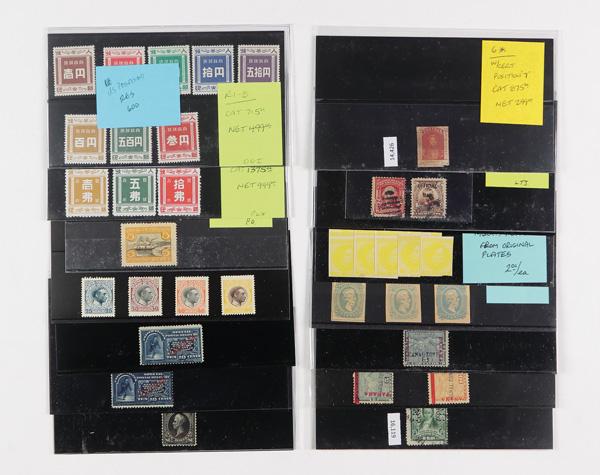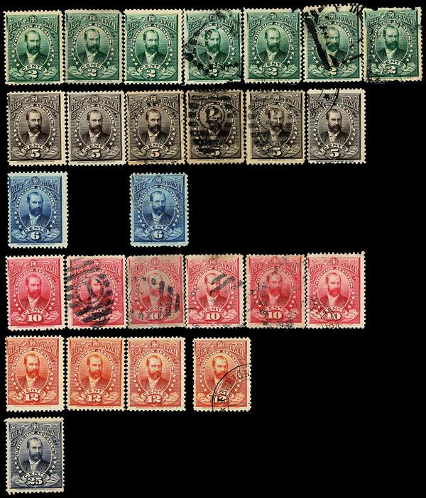 Hawaii, Valuable Mint and Used Stock, over 400 items on approximately 80 black cards, all identified with catalogue values on backs, spanning the entire period of Hawaiian philately; includes reprints and Specimens, some blocks and/or positionals, the used offering some nice cancels; also include are 29 stationery items or covers, offering even more for the dealer or collector; generally fresh and sound (or sound appearing), though expect the occasional toning or fault; owner's catalogue of $20,000-plus (tape included) should be carefully reviewed, but plenty of retail and profit potential to be found in this high-flying "Aloha" group, generally Fine to Very Fine or better, fully imaged online. Shipping charges apply - weight 1.6 lbs. (PDF for this Lot) (Image)