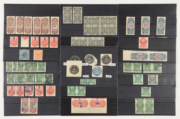 Hawaii, Useful Mint and Used Revenues Selection, 88 items including singles, pairs and blocks, neatly arranged on 25 black cards with catalogue number and value noted on reverse, ready for quick and easy turn-around; we note several inscription blocks (one used, the other mint), plus five imprint seals on piece; a small number of postage bearing better cancels and a facsimile print are offered as bonus material; generally fresh and sound (or sound-appearing), though expect the occasional small flaw as is common on these issues; owner's catalogue of $11,000-plus (tape included) should be carefully reviewed, generally Fine to Very Fine with better, a nice grouping; fully imaged online. Shipping charges apply - weight 0.6 lbs. (PDF for this Lot) (Image)