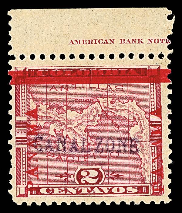 1904, 2c Map, rose (Scott 1), top margin part imprint single, disturbed o.g. with hinge remnant, fresh-faced with clean color and impression, nearly Very Fine, a pretty positional, with 1986 A.P.S. certificate. Scott $650. (Image)