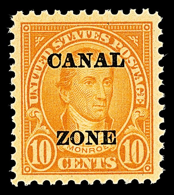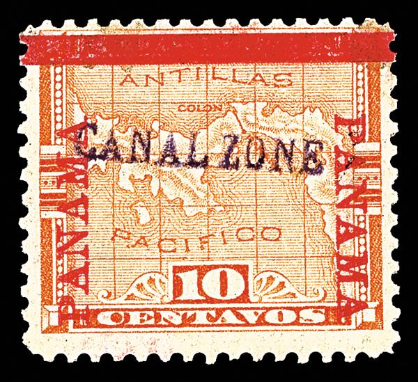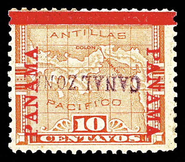 1904, 10c Map, yellow, "CANAL ZONE" inverted (Scott 3a), disturbed o.g., Post Office fresh and clean, Fine to Very Fine, only 200 issued, with 2004 P.S.E. certificate. Scott $775. (Image)