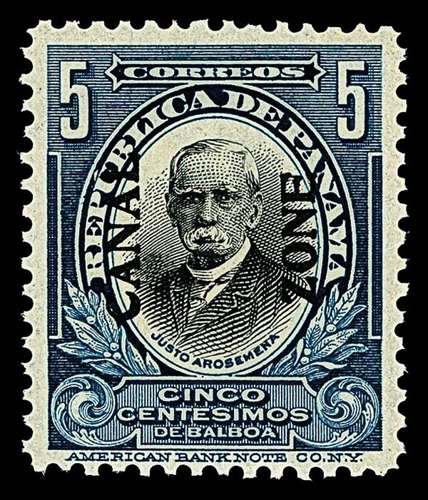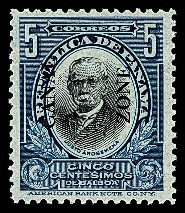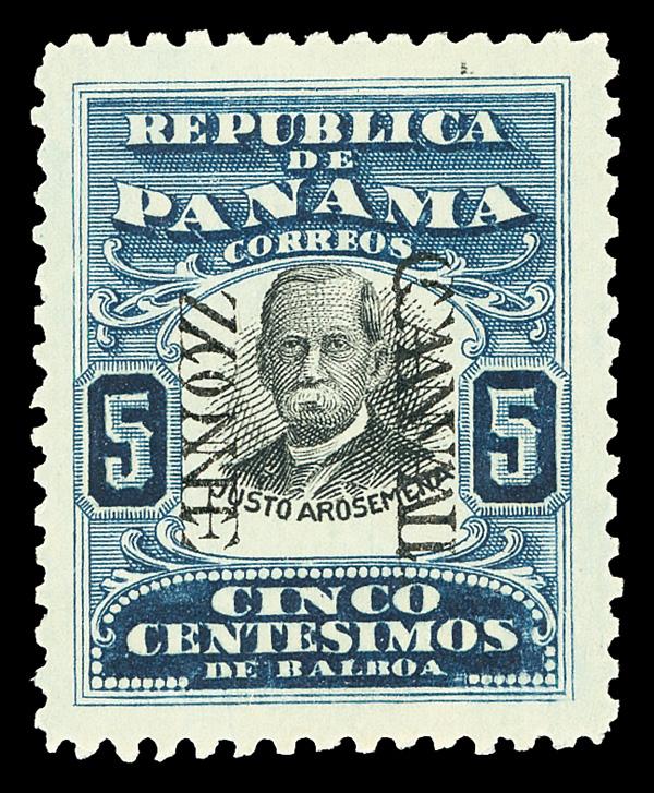 1906, 5c Arosemena, ultramarine & black, overprint double (Scott 24c), perfectly centered overprint registration, radiant color, the SMQ doesn't currently list this issue, o.g., previously hinged, Extremely Fine to Superb, with 2024 P.S.E. certificate graded XF-SUP 95. Scott $500. (Image)