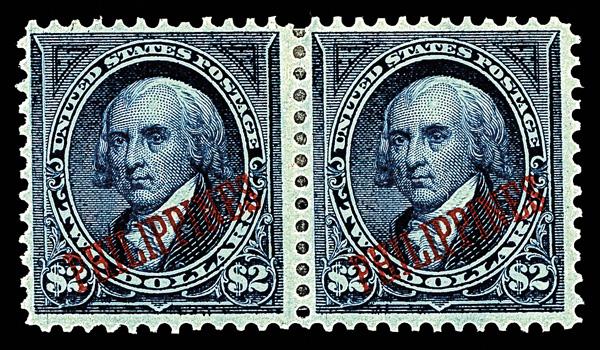 1901, $2 dark blue (Scott 224), horizontal pair, o.g., hinged, with eye-catching color depth and sharp detail on bright white paper, sound with fresh gum, Fine to Very Fine, with 2022 P.S.E. certificate. Scott $700 as singles. (Image)