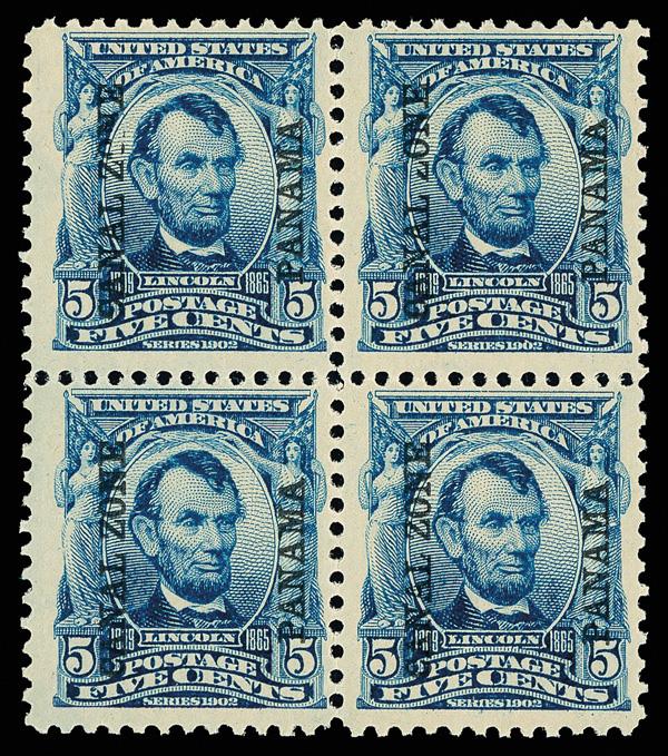 1904, 5¢ Lincoln, blue (Scott 6), block of 4, o.g., never hinged, fresh with bold color and full detail, sound with all perforations intact, Fine to Very Fine. Scott $375 as hinged. (Image)