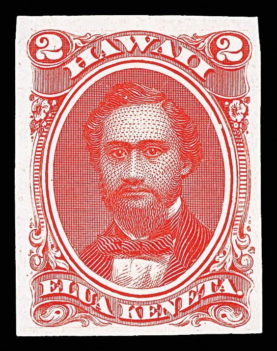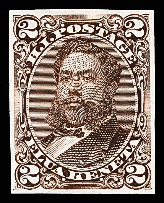 1875, King David Kalakaua, 2¢ brown, plate proof on India paper (Scott 35P3), sound with intense color and clean impression, Very Fine. Scott $400. (Image)