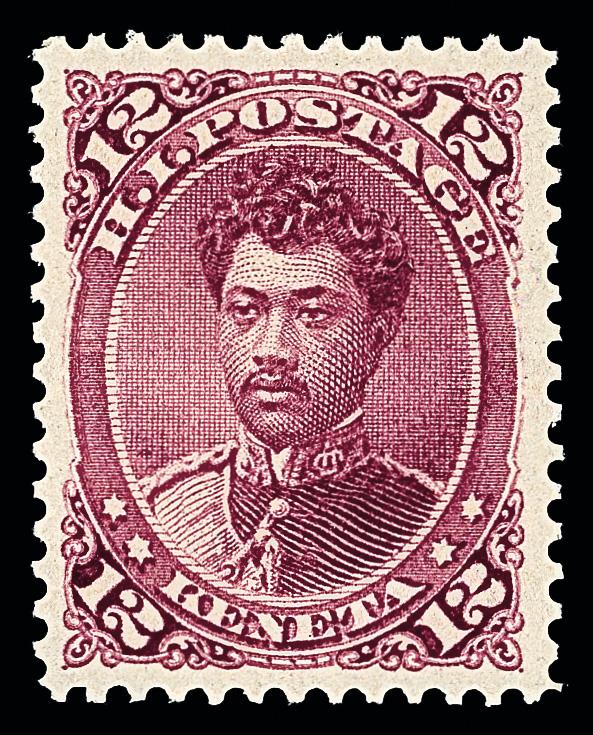 1883, Prince William Leleiohoku, 12¢ red lilac (Scott 46), o.g., never hinged, Post Office fresh and sound with bright color and clean impression, Very Fine to Extremely Fine, with 2024 P.S.E. certificate graded VF-XF 85. SMQ VF-XF 85; $270. Scott $225. (Image)