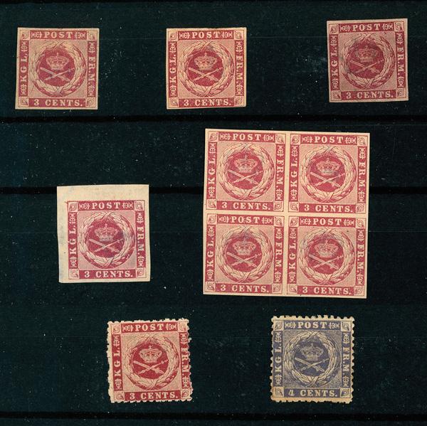 Danish West Indies, Nearly Complete Mint Collection with Extras, 1874-1915, One stockbook with a very nearly complete collection of mint; some obvious color varieties of the Bicolors and, upon closer examination, some inverted frames too. A number of stamps in duplication, as well as in blocks, such as #2 (signed Stolow) and also some better used, for example 5-10, 12. In addition, 14 pieces of postal stationery, complete Christmas seals from 1908-16, and a few covers including one to Bordeaux cancelled in St. Thomas with British stamps (A11 & A13) and three covers featuring bisects of 18a, overall Fine to Very Fine, photographed in full. Shipping charges apply - weight 2 lbs. (PDF for this Lot) (Image)