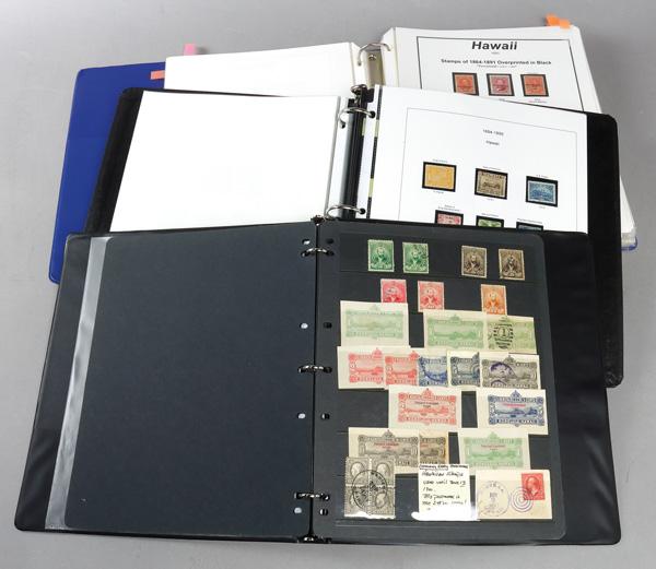 Hawaii, Mint & Used Collection with Extras, 1868-99, Two collections of Hawaii in albums with all stamps in black mounts and featuring such better mint as #30-32, 36, 40, 46, 50S (specimen), 53-61, 64, 65-66, 72, UX2, UX7, UX9. Some of the best material however is in an additional binder; arranged in near-catalogue order with many premium items including some valuable revenues; highlights include used #30-34, 42-47, 65, R4, R6, R7-8, and mint 30-31, 34, 42-46, 48-49, 52C, 53-61, 63, 65, 67-73, O5, R1, R3. In this same binder, multiple pages of Canal Zone with some mint in blocks, and a page of mostly reprints of the Confederacy, overall Fine to Very Fine, additional images online. Shipping charges apply - weight 11.2 lbs. (Image)