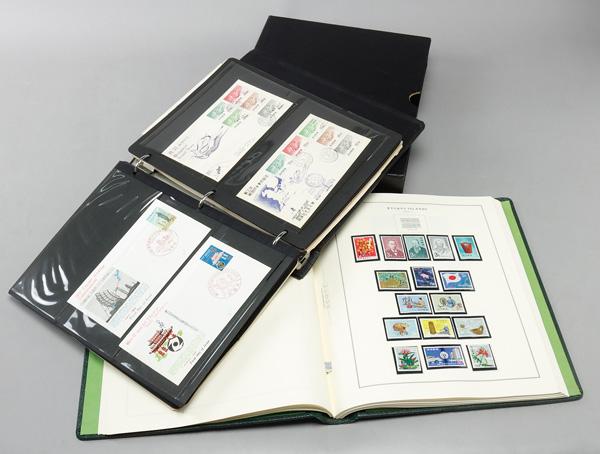 Ryukyus, "The Okinawa Collection" Highly Complete Mint with Extras, 1948-72, A highly complete collection in a Scott Specialty album with such better mint as #14-15, 18, C1-3, but the bulk of the value is actually is in a separate binder on stockpages featuring blocks of four of 8-13, 15, 18, 19-26, C1-3, C4-8, C9-13, E1, an imprint block of six of C14-18, an imprint block of ten of 76-80, a full sheet of twenty of 72, lots of better unused postal stationery, for example, U1-2, UZE15, better FDCs, such as 32-33, C9-13, C14-18, a very scarce set of unused revenues (R9-16), various overprint varieties on #16 mostly in blocks, some military currency and an international reply coupon. Go cuckoo for Ryukyu! Fine to Very Fine, video flip accessible online. Shipping charges apply - weight 7.8 lbs. (Video for this lot) (Image)