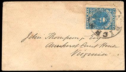 Civil War Postal History, 1861-1865. Small group of 50 U.S. and C.S.A. covers including Union Soldier correspondence of 38 covers; better noted CSA Walhalia S.C. "Paid" "5" stampless use, CSA 2b dark blue use from Richmond Va. to Amherst C.H. Va.; CSA "Geneva Ga. March 21" manuscript. postmark and "Paid 5" rating to Augusta; three covers to POW with manuscript examiners markings, etc.; some mixed condition. Estimate; $300 - 400. US$300-400 (Image)