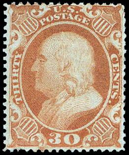 1888, 30¢ Hamilton, orange brown (Scott 217), well centered, with dazzling color, unused without gum, Very Fine or better. Scott $90. Estimate $75 - 100. Scott $90 Suggested Bid $75-100 (Image)
